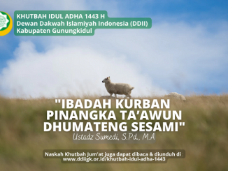IBADAH KURBAN PINANGKA TA’AWUN DHUMATENG SESAMI Ustadz Sumedi, S.Pd., M.A Khutbah I اللهُ اَكْبَرْ (3×) اللهُ اَكْبَرْ (×3)اللهُ اَكبَرْ (×3 اللهُ اَكْبَرْ كَبِيْرًا وَالحَمْدُ […]