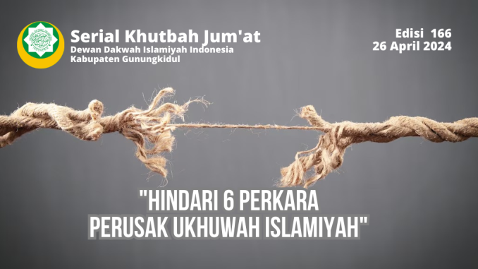 Demikianlah khutbah jum’at siang hari ini tentang enam perkara perusak ukhuwah Islmiyah yang seharusnya kita perhatikan dan sekuat tenaga harus kita hindari.